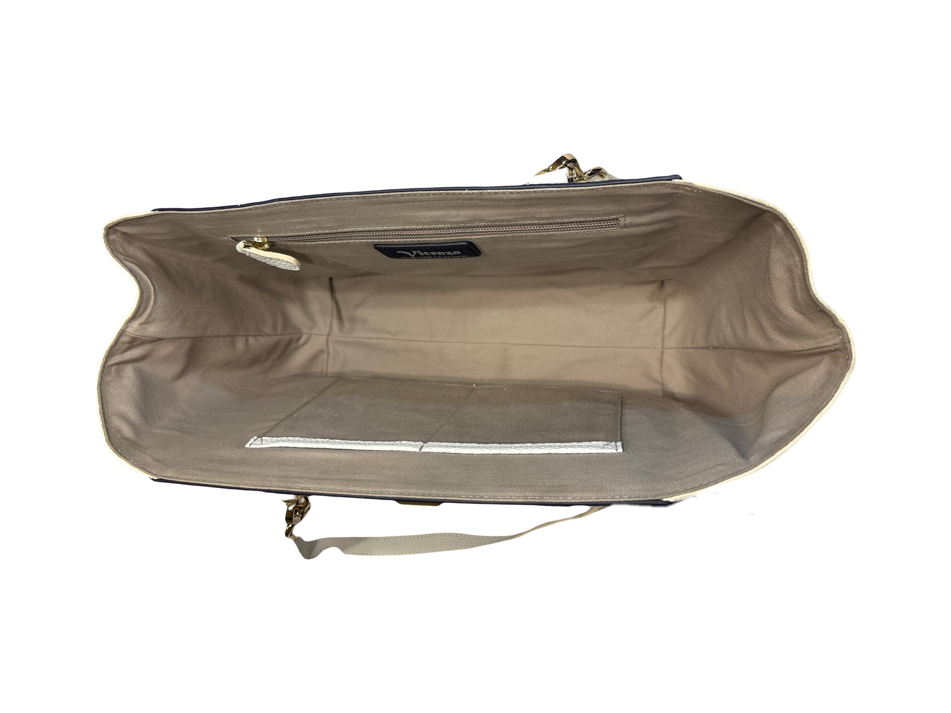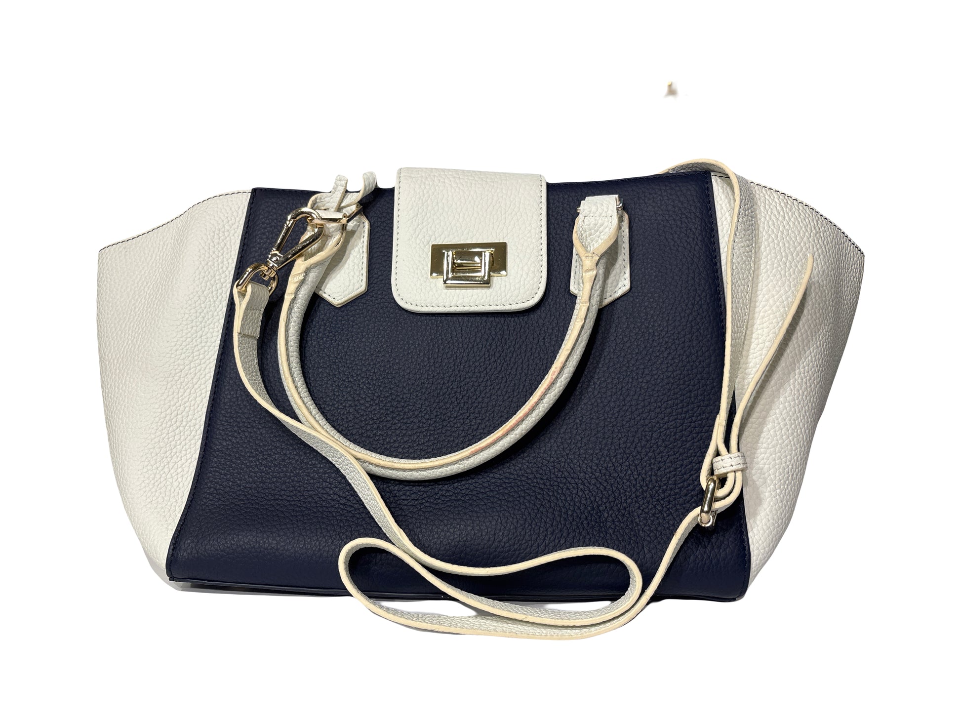 Crafted from high-quality Italian leather, the Vicenza Blue and White hand bag Tote is a sleek and stylish accessory. With its spacious interior and durable construction, this handbag is perfect for carrying all your essentials while adding a touch of elegance to any outfit.